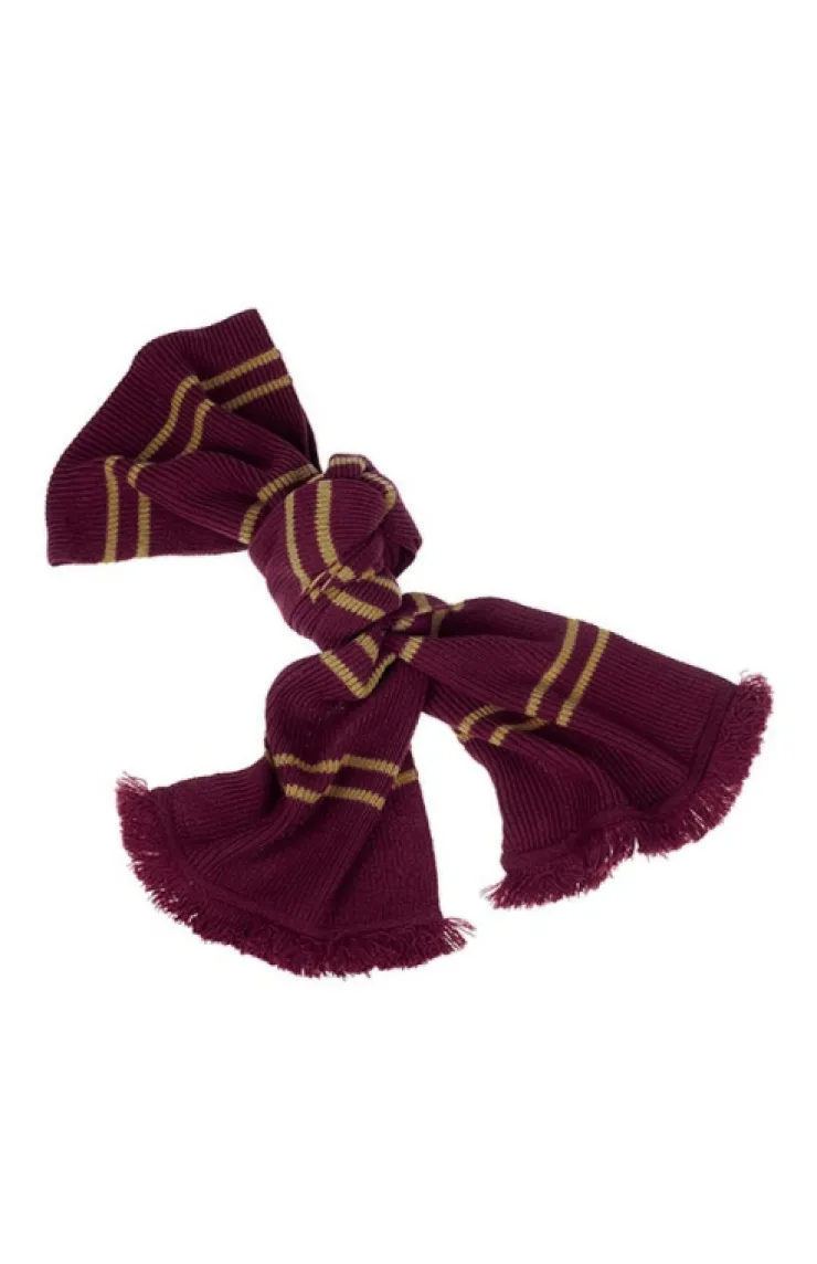 This scarlet Gryffindor scarf features gold stripes and scarlet tassels.