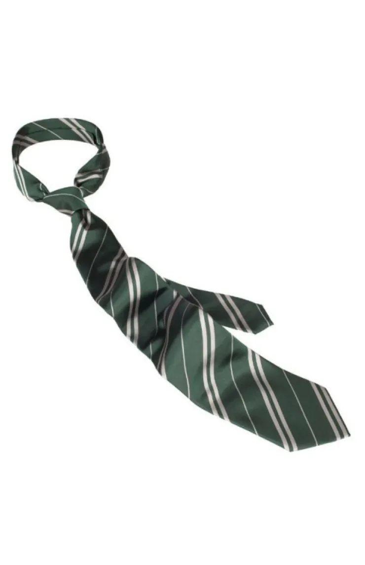 Slytherin house tie in the signature green with diagonal silver stripes.