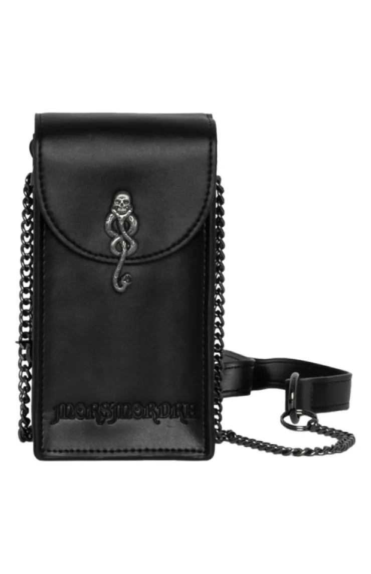 The Wizarding World of Harry Potter™ Crossbody Bag featuring the Dark Mark with ™Morsmordre™ embossed across the bottom. Comes with a magnetic snap-closure and removable chain strap.