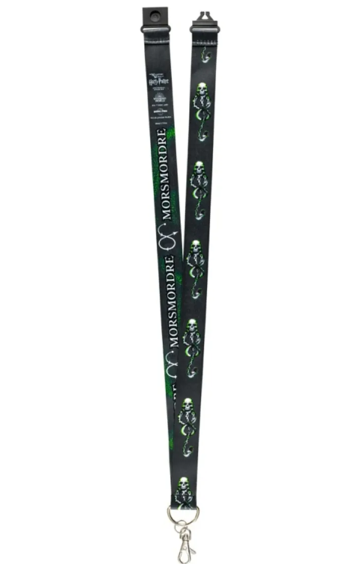 Dual sided, The Wizarding World of Harry Potter lanyard with a breakaway closure, featuring "the Dark Mark" on one side, and the spell "Morsmordre" on the other.