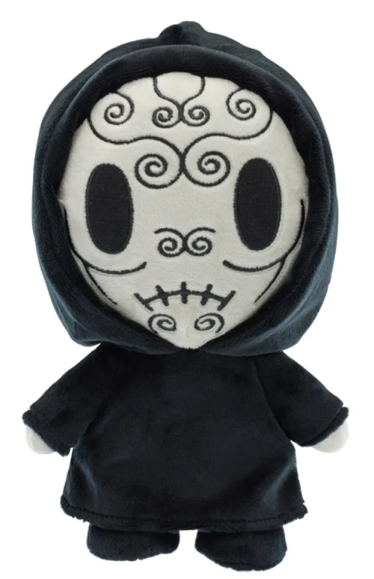 Death Eater character plush adorned in the black robe and mask of those following the Dark Lord.