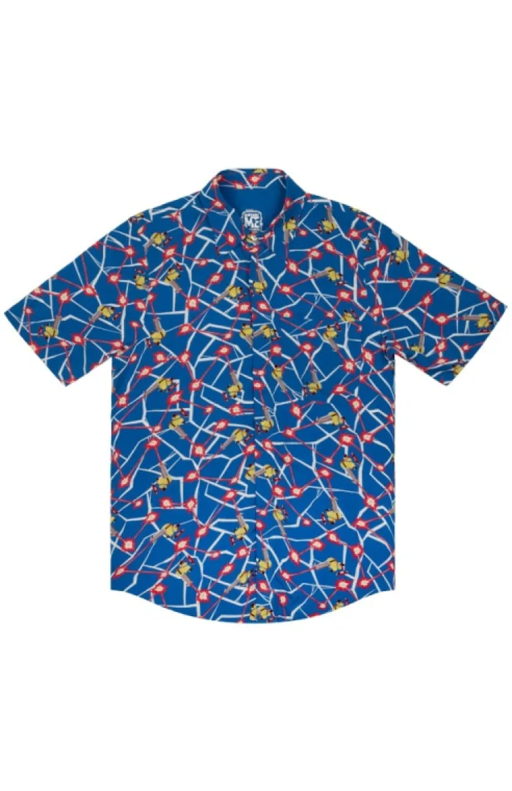 Despicable Me 4 camp shirt featuring an allover print of Mega Minion Mel firing his laser goggle.100% RayonAdult sizeSub…