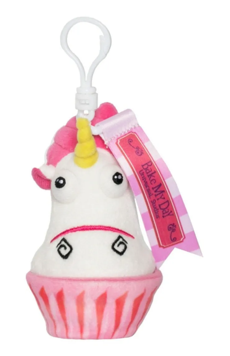 Show your love for Bake My Day, the iconic bakery from Despicable Me, with this Fluffy Unicorn cupcake backpack clip. Design features a plush Fluffy Unicorn cupcake accompanied by a "Bake My Day" ribbon.
