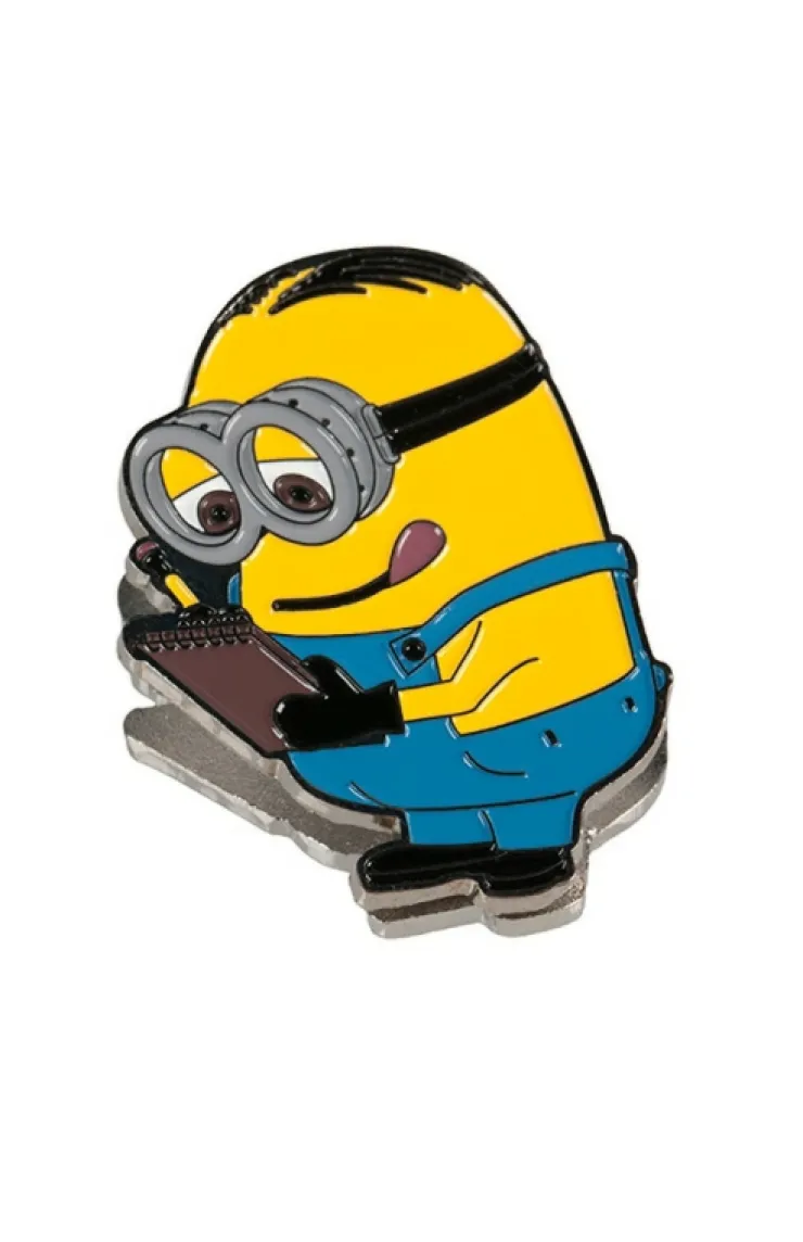 If you are looking to orchestrate a mischievous act, you might want to keep all your notes together with this metal and enamel minion clip magnet. This minion is focused and strategically writing down his plan in a notepad.