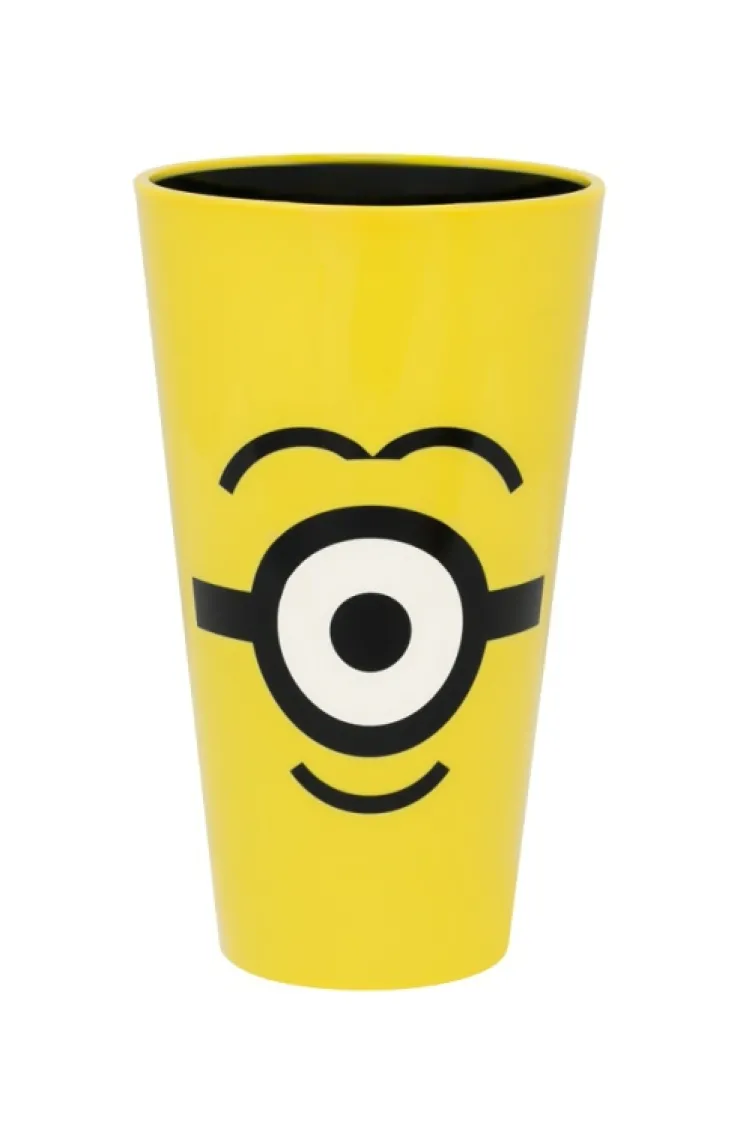 Despicable Me acrylic cup in the color yellow featuring a one-eyed Minion on the front and "Bello" on the back.