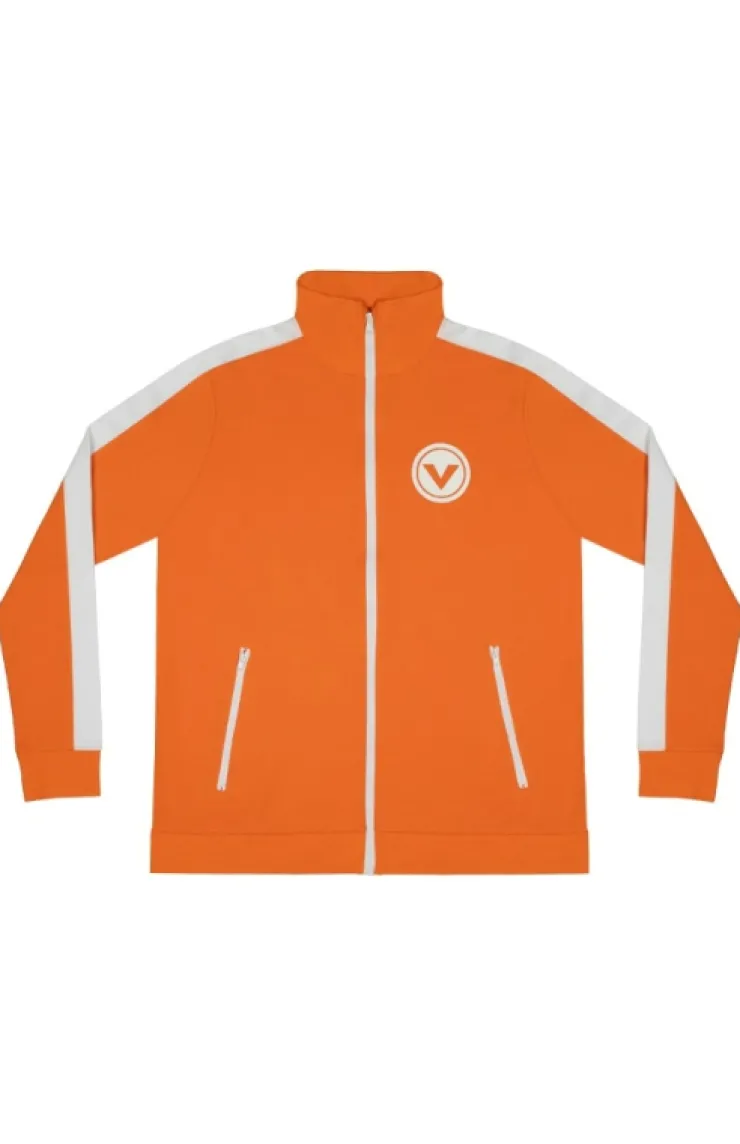 Despicable Me track jacket in Vector's signature orange and white color combo with the iconic Vector logo on the front left side.