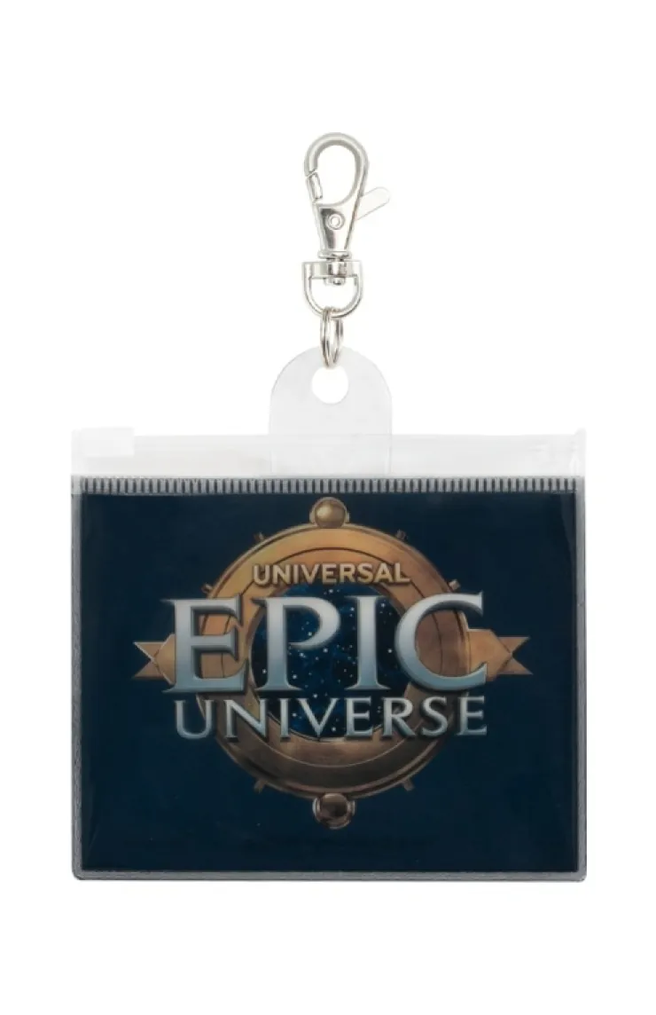 Epic Universe Lanyard pouch featuring the Epic Universe logo with resealable closure.