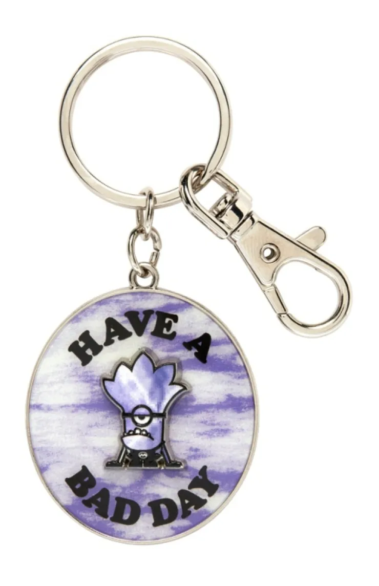 A mischievous and grumpy Evil Minion is featured on this keychain to tell you to "Have a Bad Day."Silver-tone …