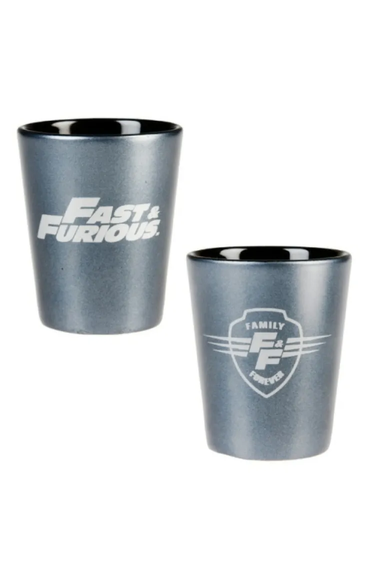 Drink in style with this shimmering shot glass, featuring the Fast & Furious and Family Forever logo.