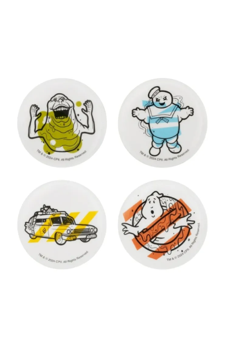 Ghostbusters button set featuring a fun hand drawn doodle design.4 Piece setMetal pin backing1 1/4" DiameterImporte…