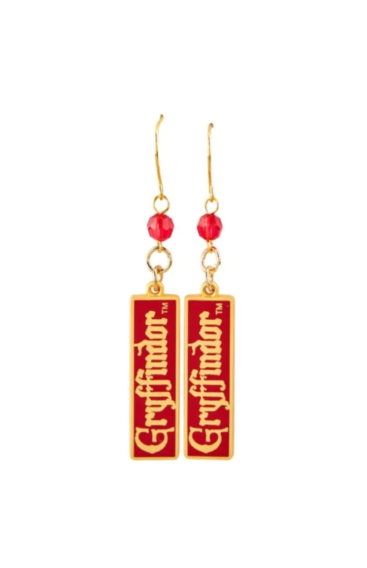 Elegant, drop earrings featuring matching Gryffindor pendants with accent beads and matte, gold-tone finish.