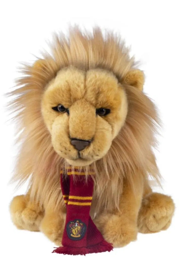 Realistically detailed plush featuring the Gryffindor house emblem, adorned with a scarlet and gold striped house scarf with the Gryffindor crest.
