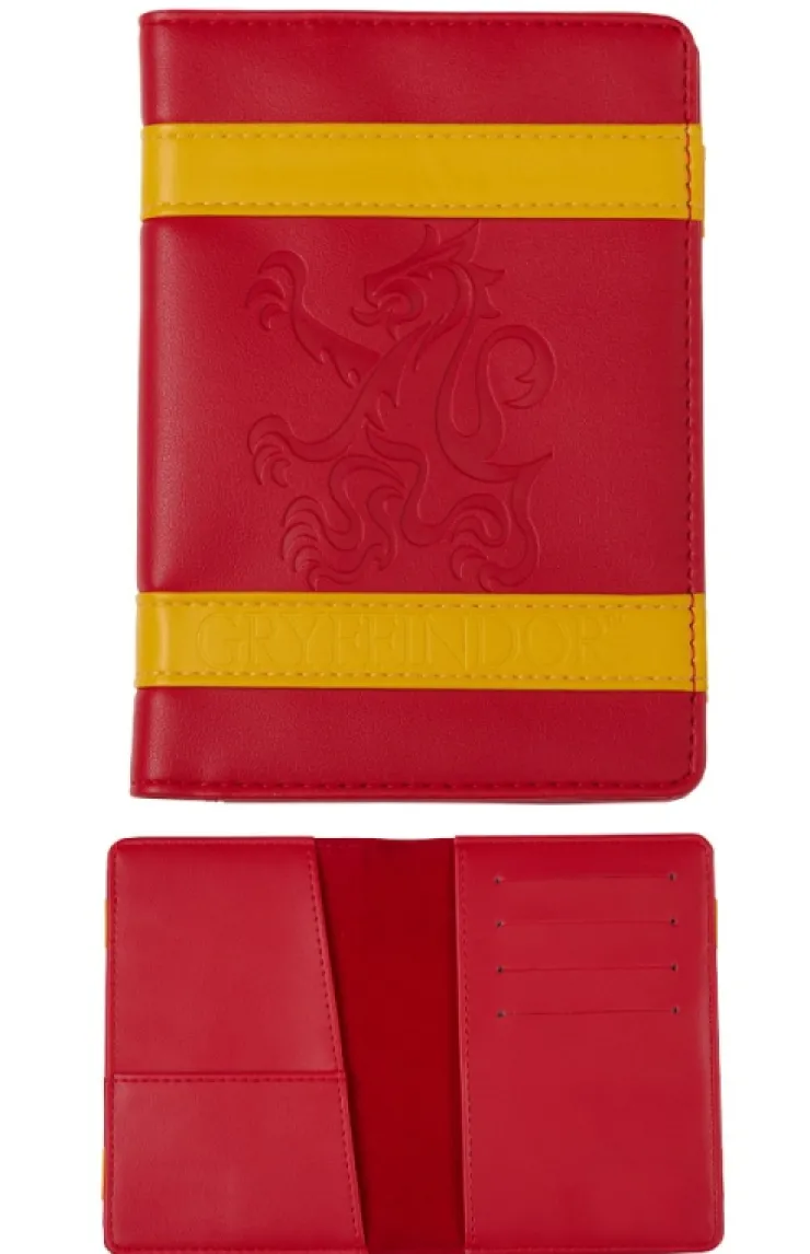Gryffindor passport holder with house emblem and name debossed on the front of soft, faux leather. Design is accented by Gryffindor's house colors, and features velvet lined interior with 3 multi-purpose pockets and 4 card slots.
