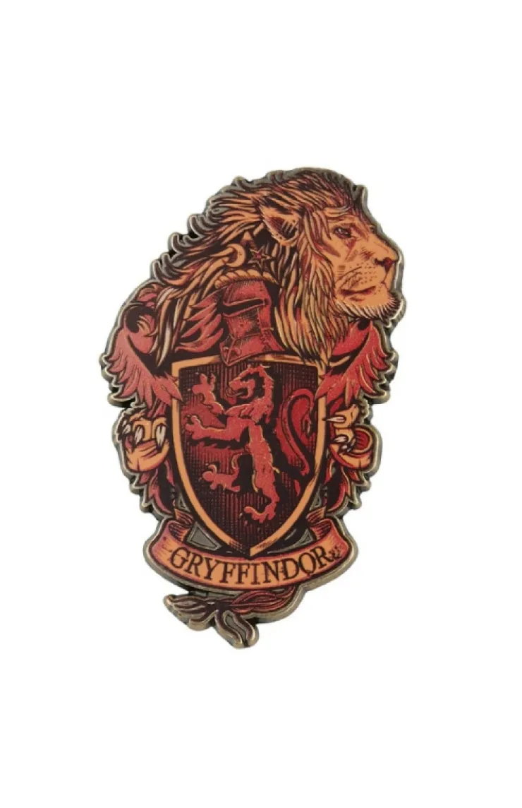 Gryffindor magnet featuring the mascot shield and colors enamel filled on antique gold-tone metal from The Wizarding World of Harry Potter™.