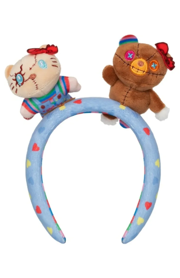 Hello Kitty plush headband featuring Hello Kitty and Tiny Chum in a Chucky inspired design.