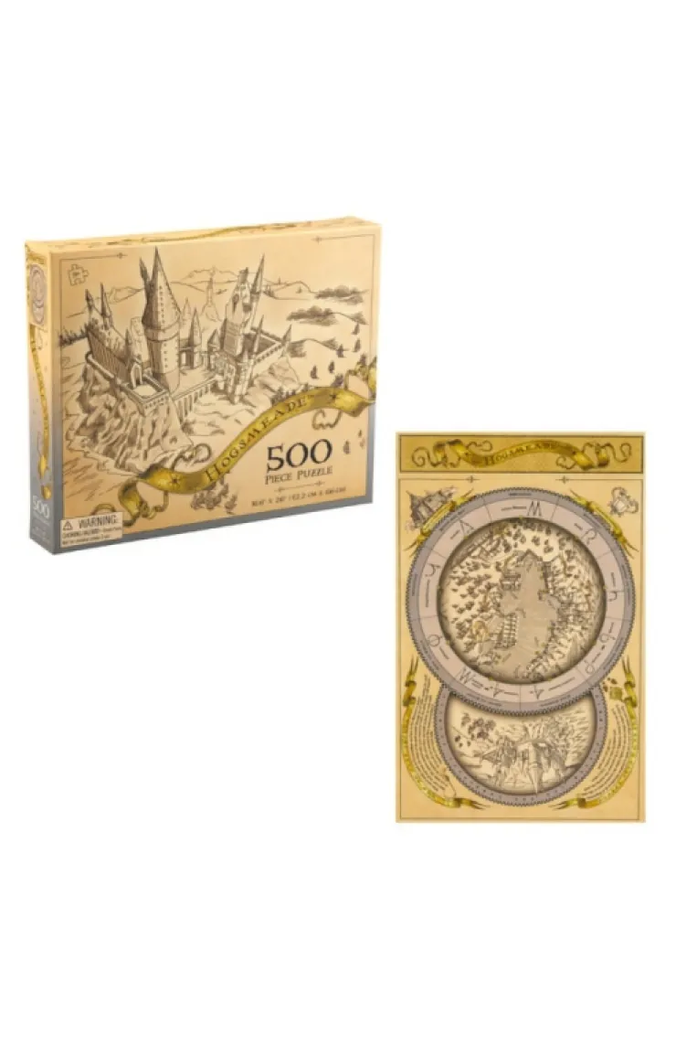500 piece puzzle in antiqued natural tones depicting a map of Hogsmeade, including spells and where to practice them at The Wizarding World of Harry Potter™ in Universal Orlando Resort. Puzzles Game Games