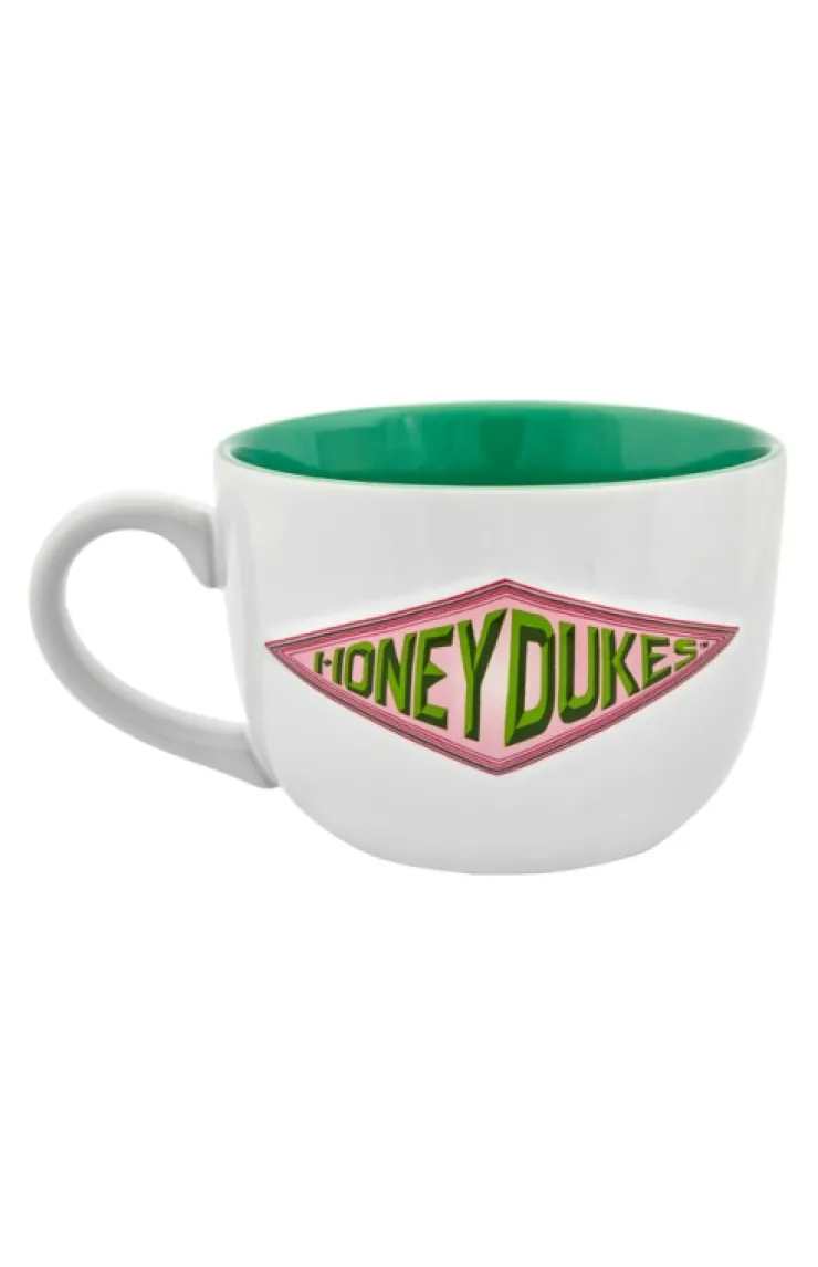 Enjoy some sweet treats from Honeydukes along with your favorite warm beverage in this ceramic, Honeydukes latte mug. Design is accented by a glossy white finish, and mint green interior.