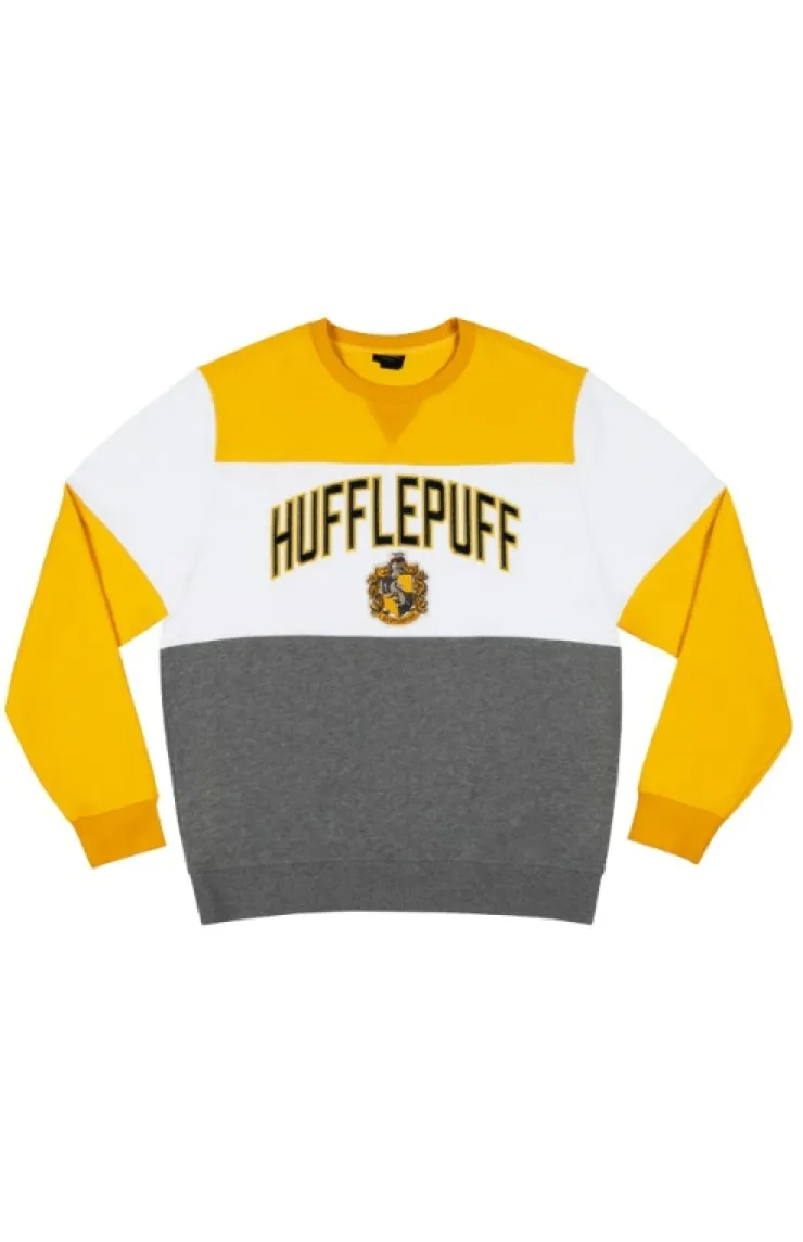 Represent your house in style with this Hufflepuff adult extra-soft pullover color block crew neck sweatshirt. This design features the Hogwarts™ house name displayed across the chest with coordinating house colors.