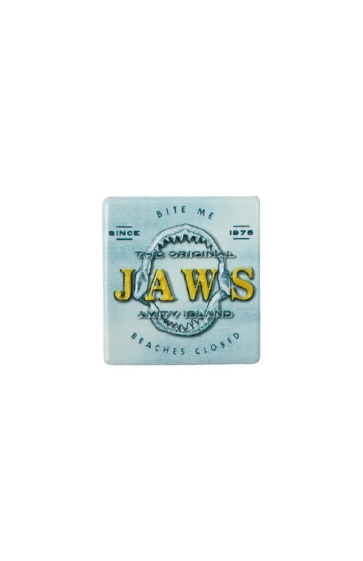 Jaws pin featuring a fun Amity Island design.Metal (zinc alloy)Sculpted designLaser print1 1/4" H x 1 1/4" WTa…