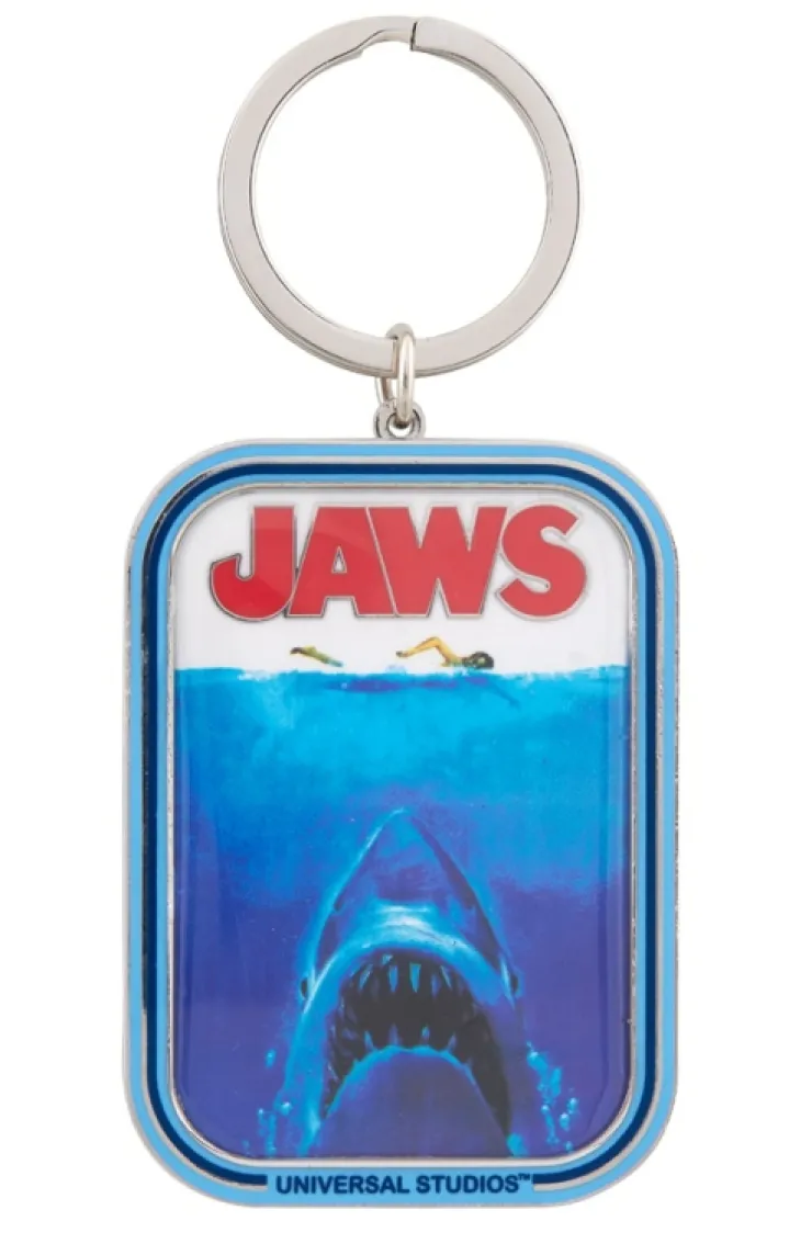 Jaw-some keychain featuring vintage poster artwork from the iconic cinematic thriller, Jaws.Silver-tone metal2 1/2"…