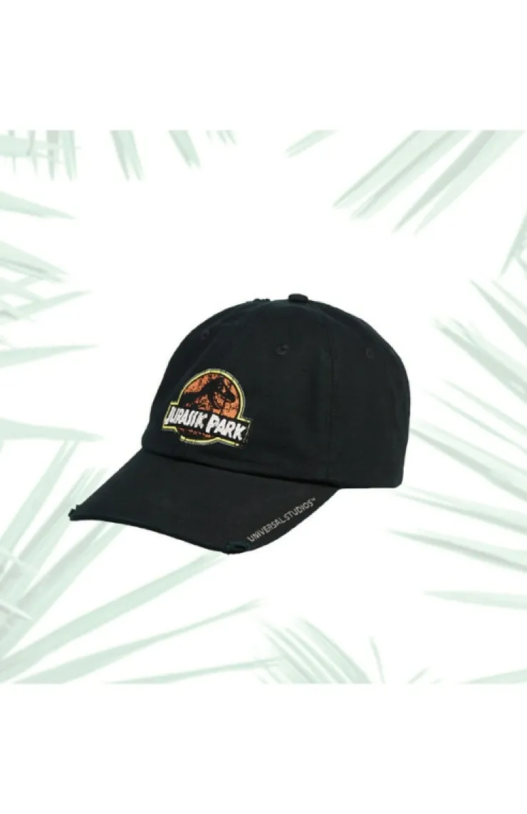 Remember your adventure with this commemorative twill cap. Classic design features distressed screen print Jurassic Park logo on the front and Universal Studios embroidered on bill.