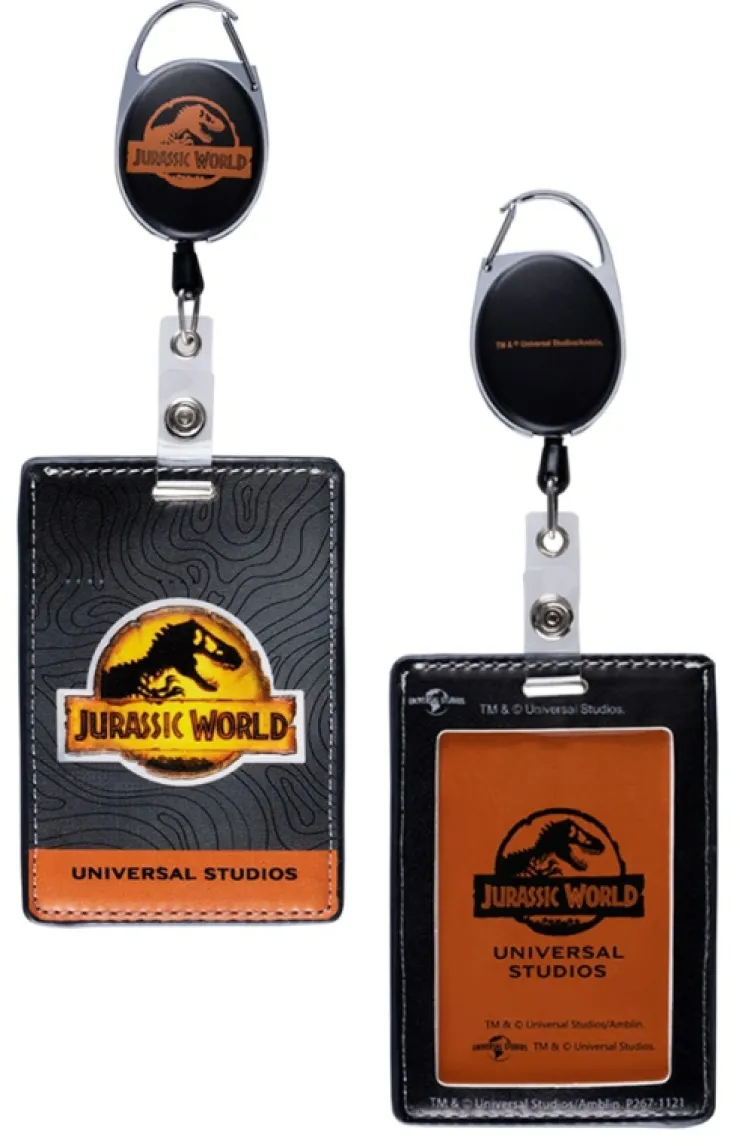 Show your love for Jurassic World while keeping your credentials handy with this clip on badge reel. The amber logo design will evoke feelings of nostalgia as it is a nod to the mosquito encased in amber from the original Jurassic Park.