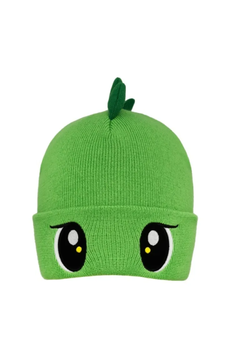 Roar with excitement for this adorable Jurassic World dino cutie beanie featuring embroidered eyes on the folded brim and spikes going up the top with a little spiked dino tail in the back.