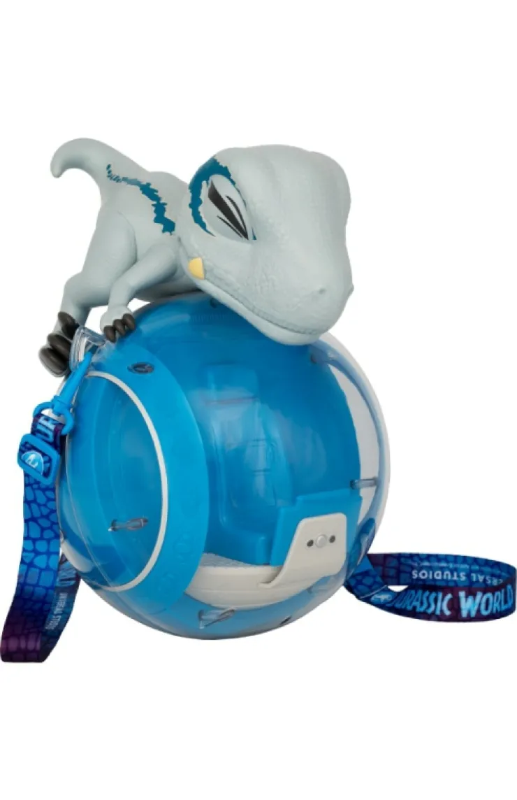 Jurassic World popcorn bucket featuring a Gyrosphere with an adorable Blue clinging on top.Removeable lanyard with lobst…