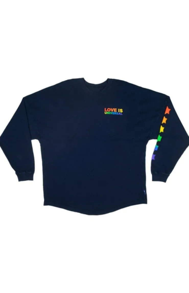 Show your support with this "Love is Universal" long-sleeve t-shirt with the famous?Spirit Jersey?cut. Design features heavy weight cotton with puff ink print for the letters and stars.