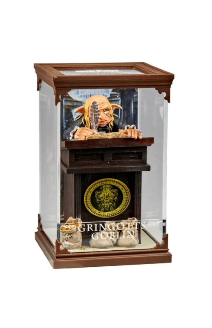 Intricately detailed and painted figure of a Gringotts Goblin. Includes a removable display cover and creature.