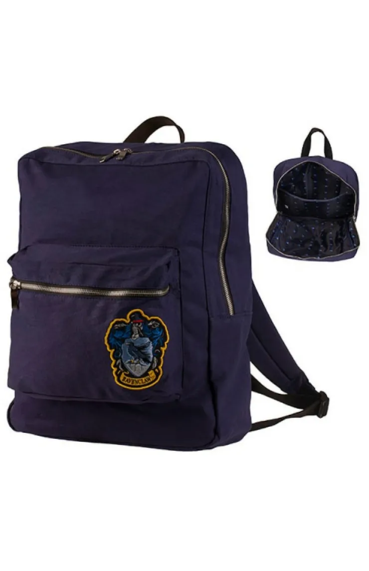 Ravenclaw backpack in house color featuring front crest appliqué and patterned interior lining with repeating house icon from The Wizarding World of Harry Potter™