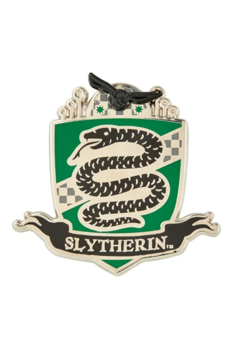 Detailed pin featuring Slytherin’s Quidditch crest hard enamel filled on silver-tone metal, accented by a sculpted Golden Snitch™ on top from The Wizarding World of Harry Potter™.
