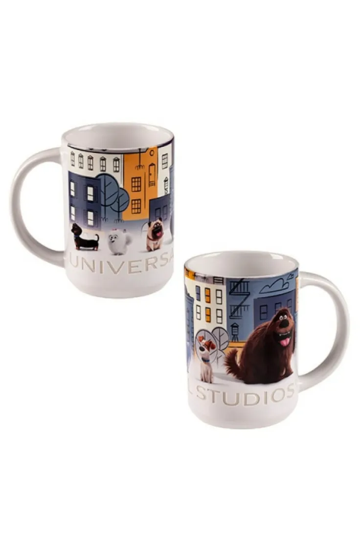 Start your day with your favorite beverage and all your favorite pets wrapping this elegant white mug with "Universal Studios" etched arouind the bottom.
