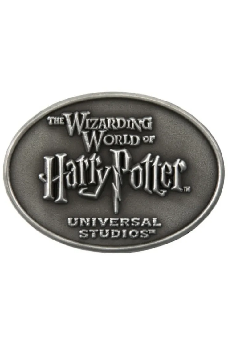 Molded metal pin featuring "The Wizarding World of Harry Potter™ – Universal Studios" embellished on front.