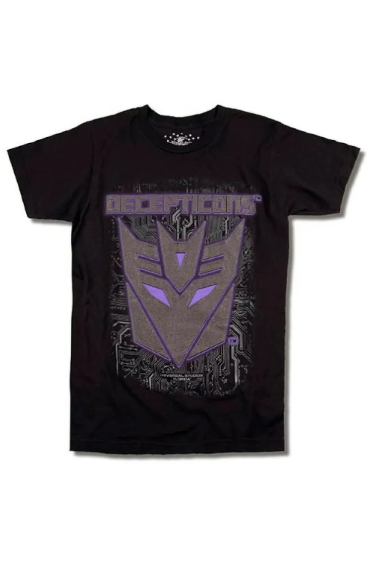 Declare allegiance to the Decepticons with their signature shield emblazoned on this bold shirt. Black t-shirt features the Decepticon shield in sueded puff over screen-printed design. Puff shield is raised against vivid purple outline for added impact. Adult shirt is comfortable 100% cotton.
