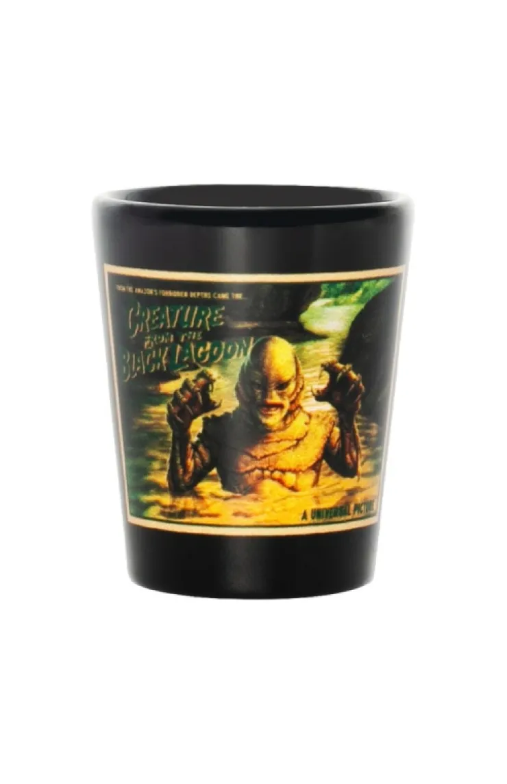 The boys around here call it "The Black Lagoon" – a paradise. Only they say nobody has ever come back to prove it. Pay tribute to the classic Universal Monsters with this molded ceramic shot glass featuring the iconic Creature from the Black Lagoon. The sublimated design is inspired by the classic 1954 film and is complete with a glossy finish.