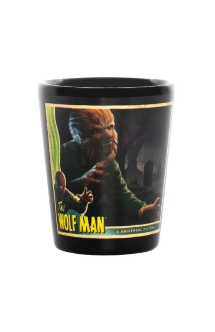 Whoever is bitten by a werewolf and lives becomes a werewolf himself! Pay tribute to the classic Universal Monsters with this molded ceramic shot glass featuring the iconic Wolf Man. The sublimated design is inspired by the classic 1941 film and is complete with a glossy finish.