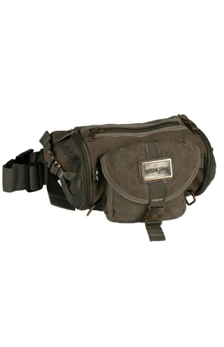 Seasoned adventurers will love this heavy-duty canvas belt bag featuring the Universal Studios logo over front flap. Bag features five zippered compartments, adjustable side carry straps and multiple metal hooks.