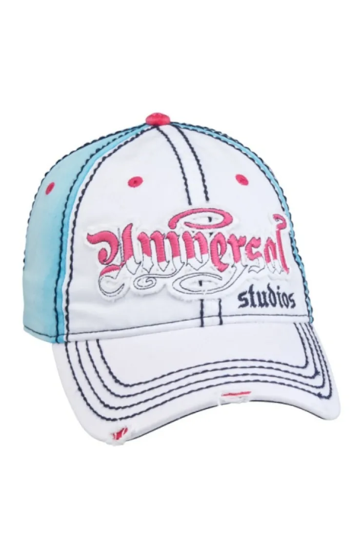 Urban style cap features washed blues, pink, and distressed white detail that make this adjustable Universal Studios hat a fun summertime addition to your collection.