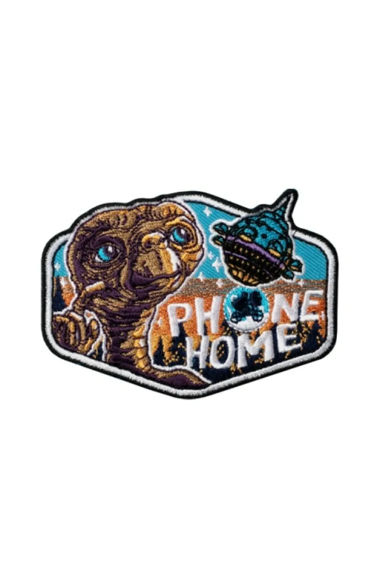 Universal Studios embroidered patch featuring a fun and colorful E.T. design with "Phone Home" across the front.