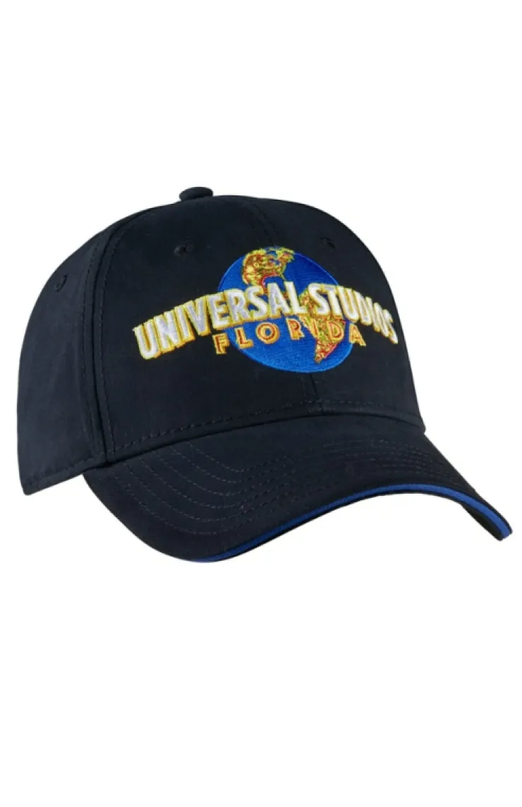 This classic Universal Studios logo hat is our most popular. The sandwich bill and hook and loop closure are constructed for comfort and a life time of wear. A six panel structured crown features an embroidered, full color Universal Studios Florida logo. For The Trip
