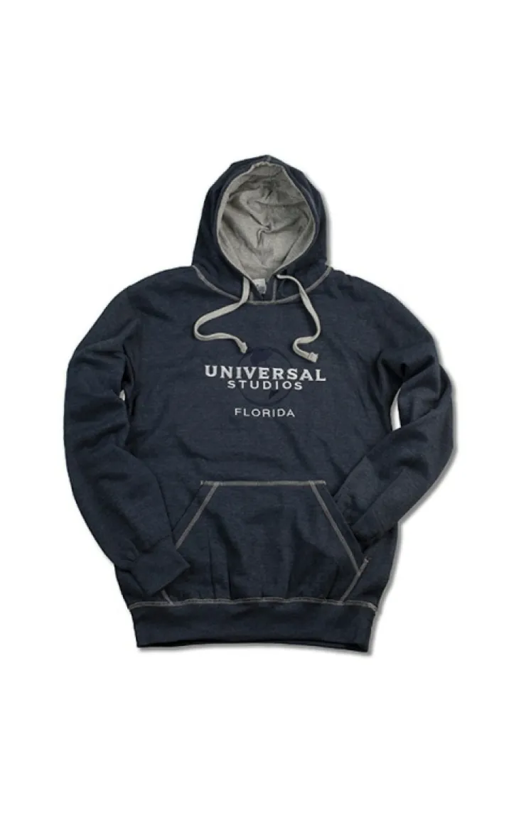 A classic design of the Universal Studios Florida logo in embroidery is featured front and center on this pull-over sweatshirt with contrasting top-stitching and hood lining.