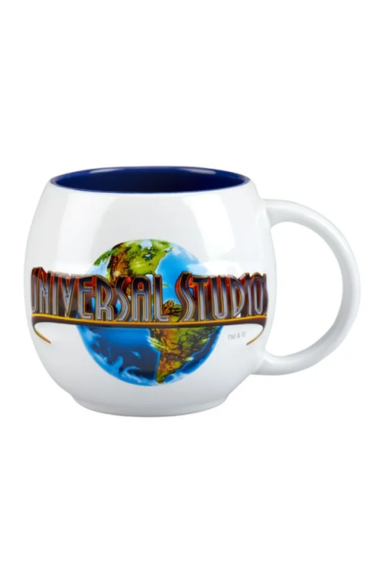 Enjoy your favorite coffee in this sculpted, round ceramic mug with a colorful Universal Studios logo raised over a glossy white background, and is accented by a contrasting blue interior.