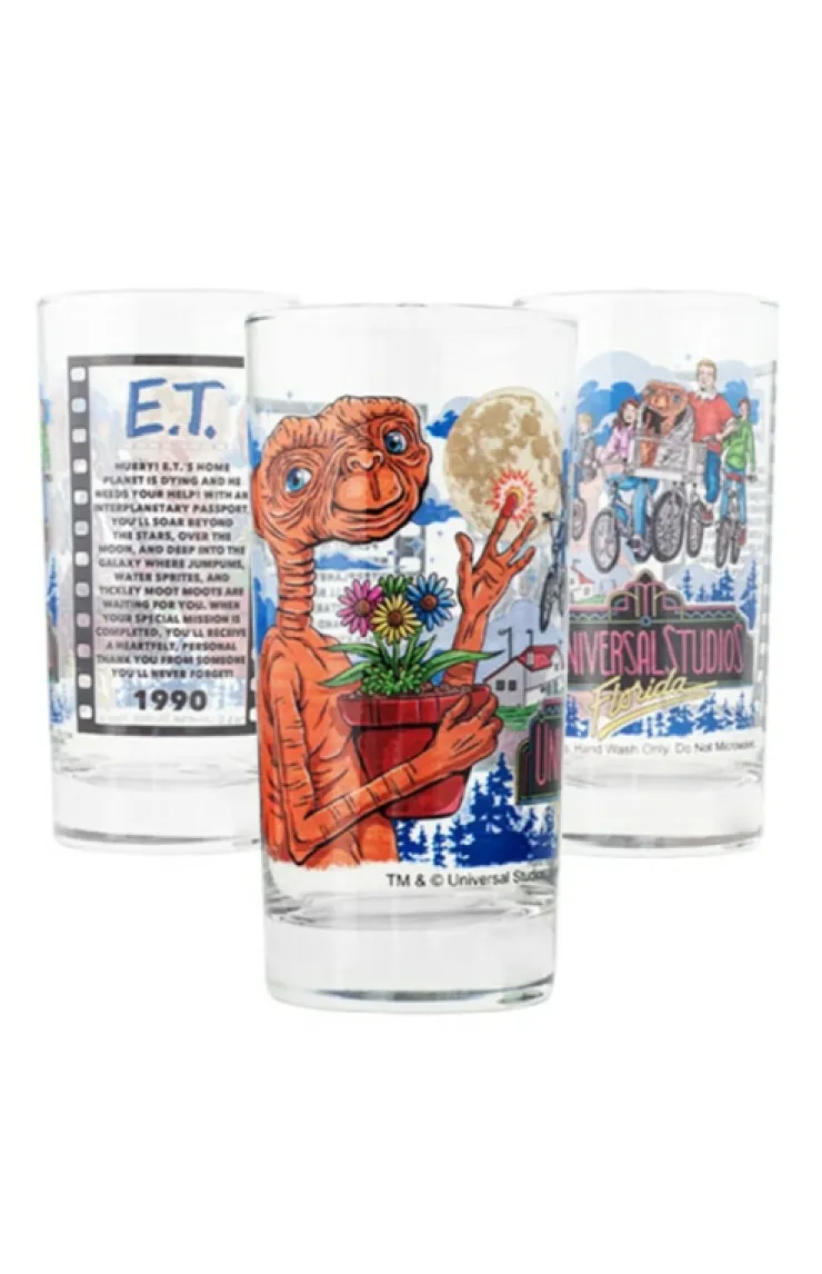 Hurry! E.T.’s home planet is dying and he needs your help! Commemorate the classics with this collectible E.T. Adventure glass from Universal Studios. Design features vintage inspired illustrations of your favorite Extra-Terrestrial, E.T. Collect all 4 featured retro attraction glasses to make a set!