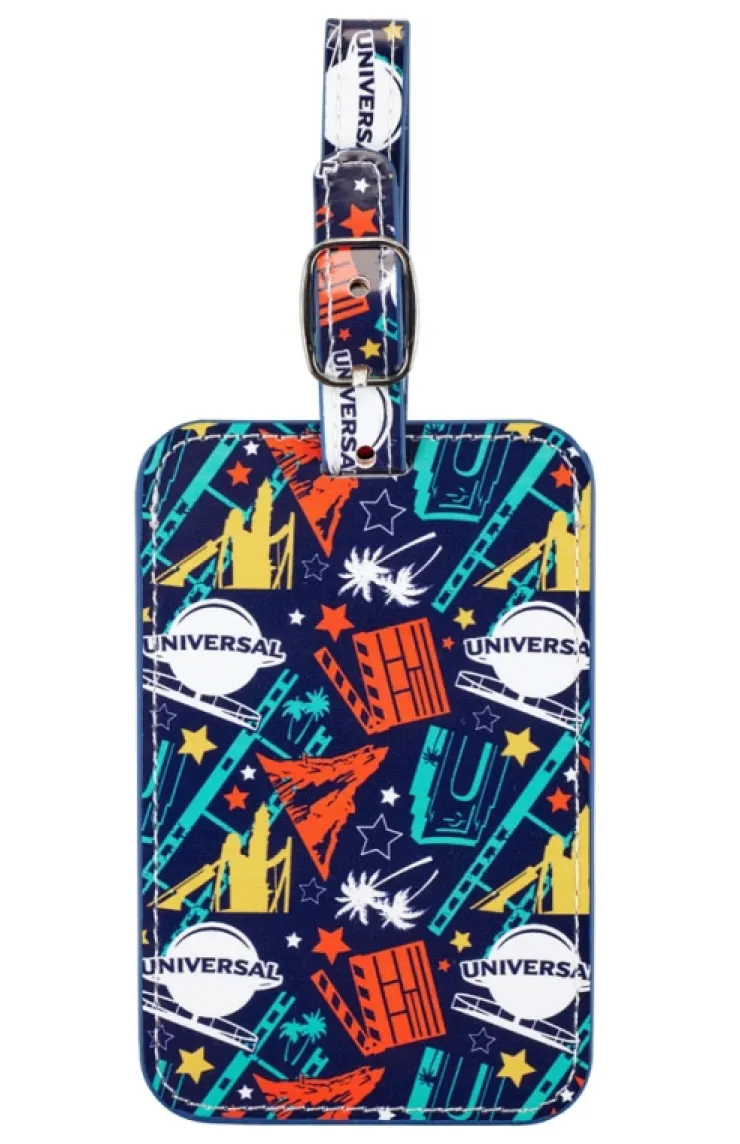 Show your love for Universal Studios during your travels with this faux leather luggage tag. The tag contains iconic symbols from the Orlando Resort, including the Universal Globe, Islands of Adventure lighthouse, Universal Studios Florida arches and a directorÂs clapboard. On the reverse side there is a slot for you to slide your information card and contains a silver-tone buckle to secure the tag to your luggage.