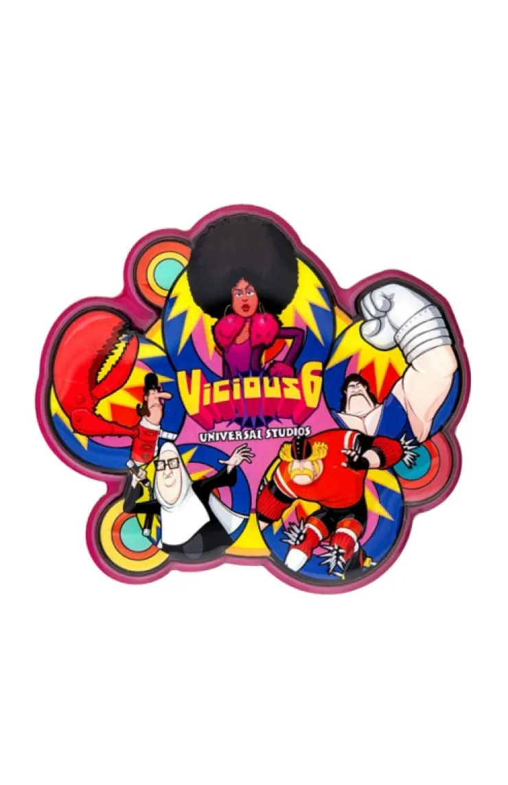 Hang up your favorite Villain-Con photos with this magnet featuring the Vicious 6 villains Strong Hold, Nun-Chuck, Svengeance, Jean-Clawed, and Belle Bottom.