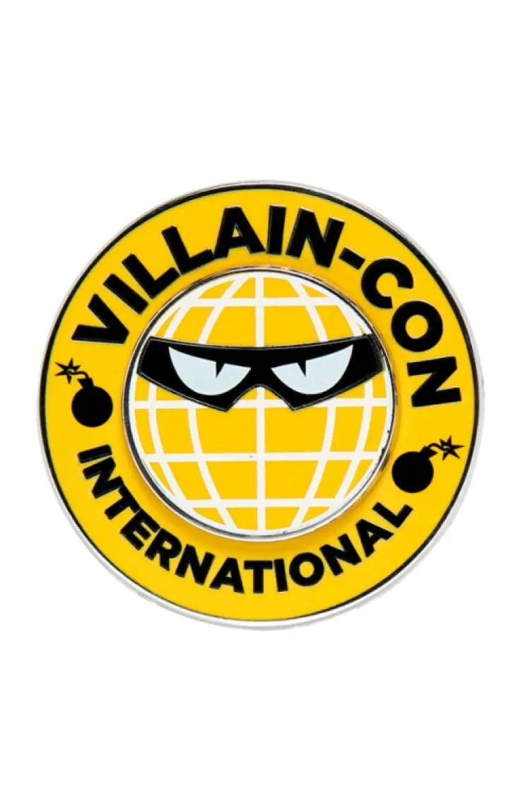 Black & yellow version of the iconic Villain-Con logo complete with a spinning globe for extra mayhem. Silver-tone pin contains two tacks with pliable star shaped pin backing to ensure the pin stays secure during your travels.