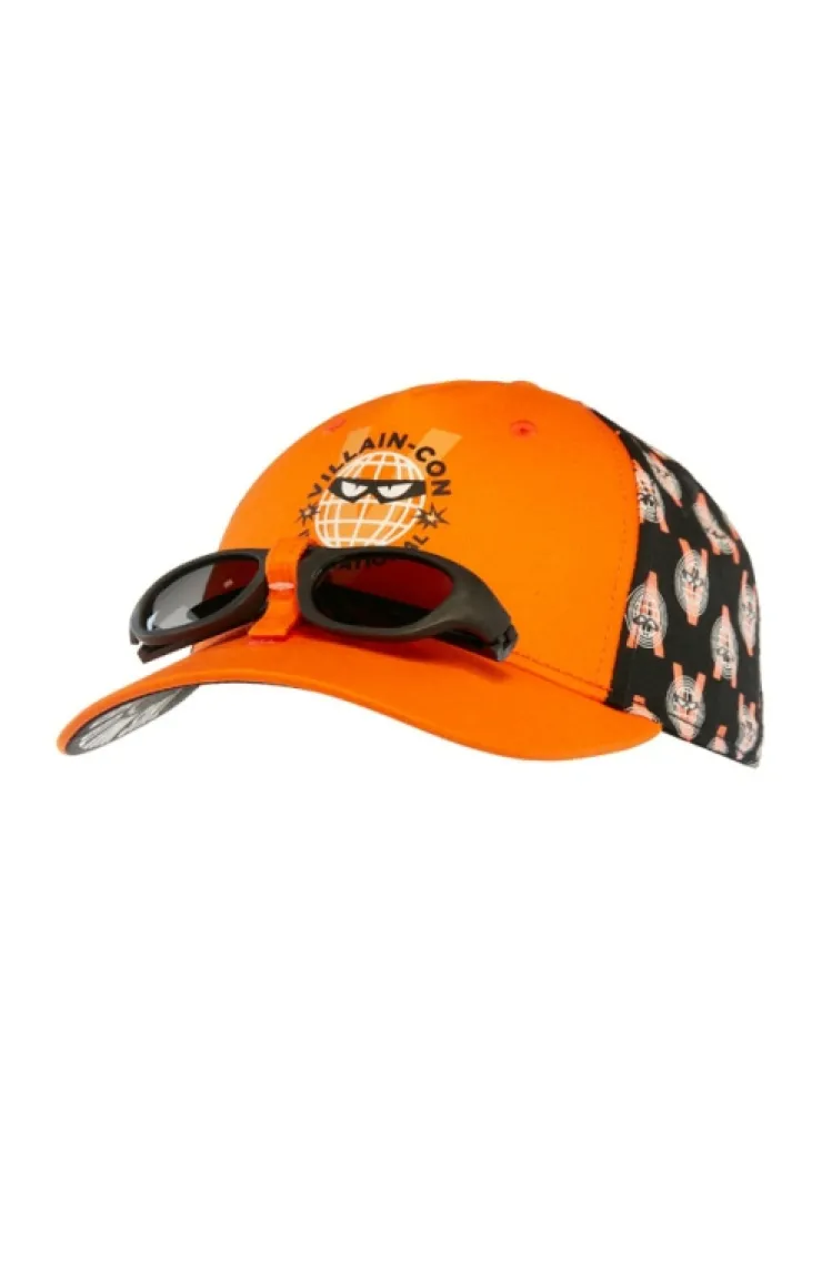 Visit Villain-Con in style with this mischievous youth cap with matching sunglasses that come included. Cap features the iconic Villain-Con logo screen printed on the front panel, a "Villain-Con International" patch embroidered on the back, and "This Way to Evil" on the underside of the bill. The adjustable hook and loop closure will ensure a comfortable fit as you explore the evilest convention there is.