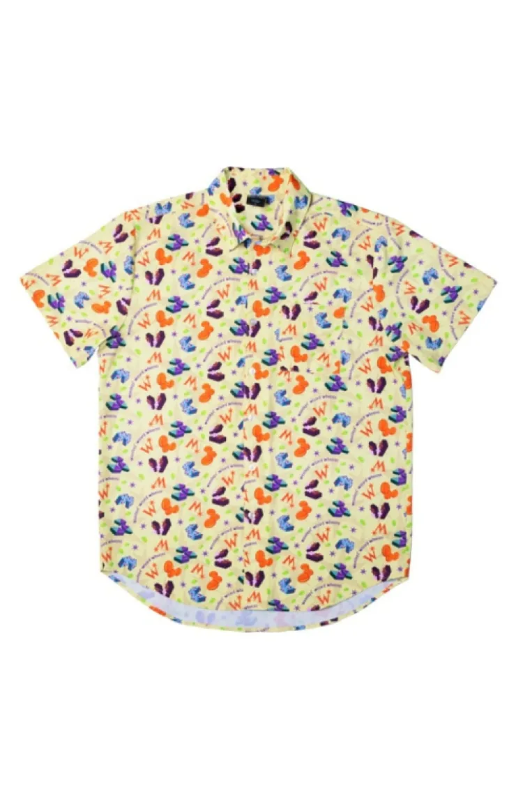 Adult camp style t-shirt featuring your favorite sweets from Weasleys' Wizard Wheezes. Featured sweets included U-No-Poo Chocolate, Nosebleed Nougat, Fever Fudge, Fainting Fancies, and the iconic Puking Pastilles.