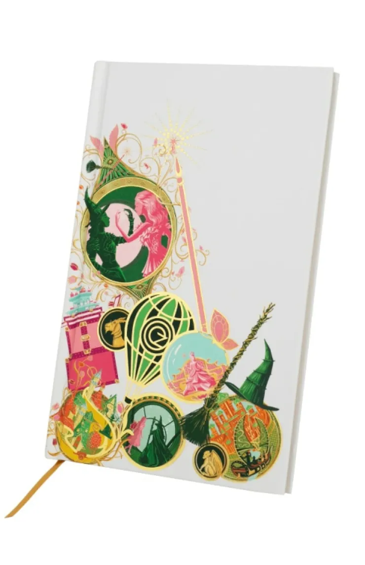 Wicked notebook featuring beautiful graphics inspired by the film with gold ribbon bookmark.